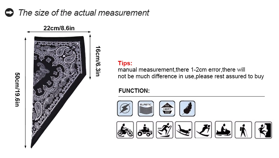Diseño versátil: Puede usarse como mascarilla, pañuelo, bufanda triangular o cubre-cuello.